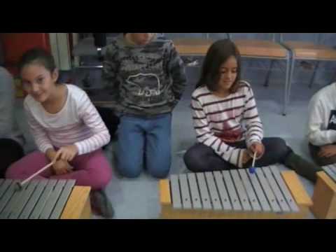 Els nois i noies de 5è B toquen un acompanyament per a la cançó " La bicicleta" de Shakira.